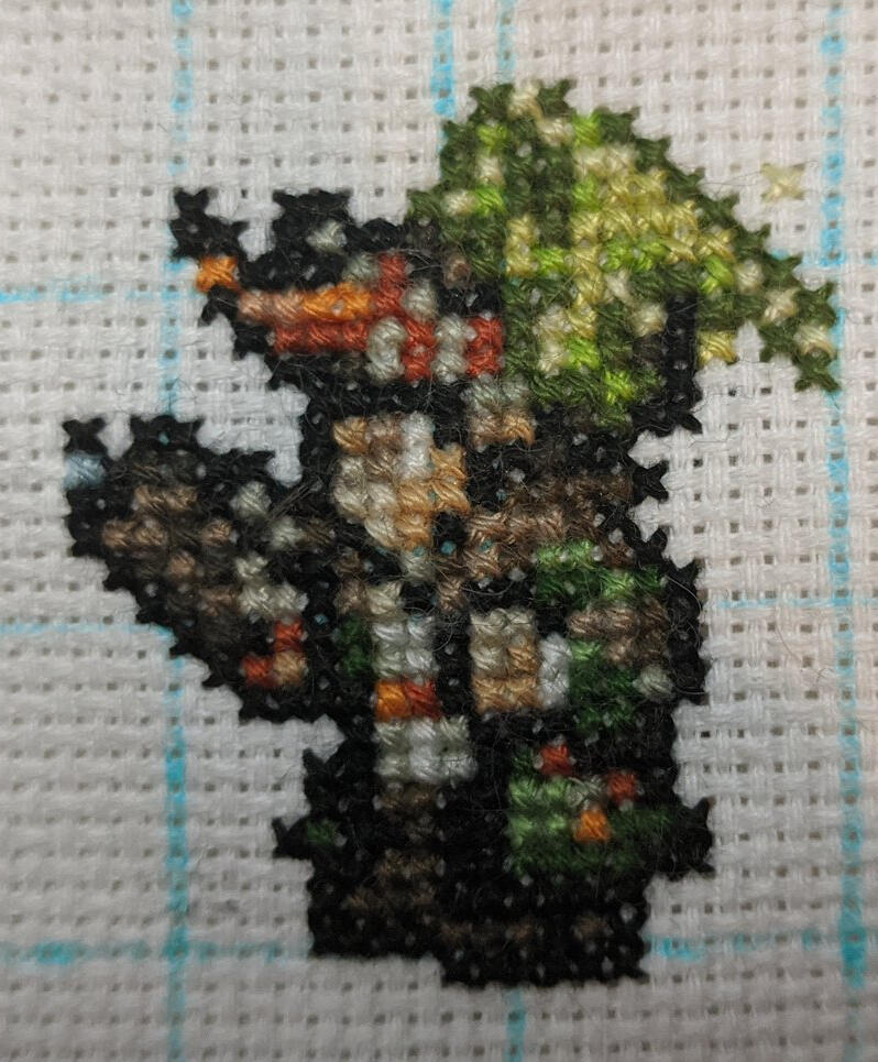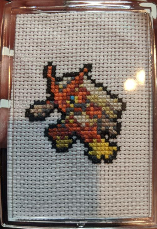 My name is GamingStitcher! I cross stitch for fun but I'm interested in expanding and doing some commissions and limited works for zines! Message me if you're interested! Click the "i" for sprites I stitch. Click "?" for commission and zine guidelines.